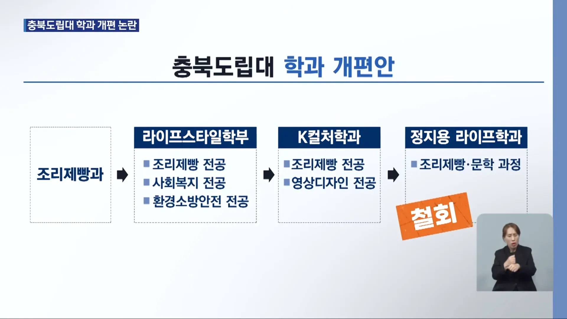 충북도립대학교 정지용 라이프학과 개편 논란 뉴스 화면
