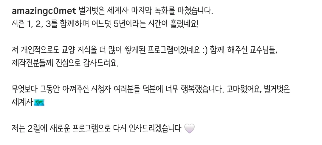 벌거벗은 세계사 규현, 이혜성 MC 하차포근한날아가는공주@8b3c7a822일 전 은지원만 남고 두명은 빠지는듯 이혜성 sns 하차소감조합 좋았는데 새로운 케미를 또 기대해보기로 ㅜㅜ