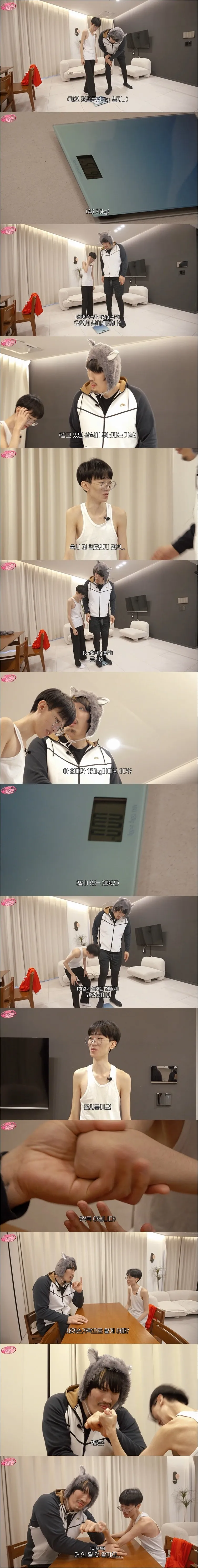 217cm 160kg 진격의 거인을 만난 181cm 47kg 멸치남 이쑤시개 아님 일반 나무 젓가락임 피자를 나쵸칩으로 만드는 마법 쓰는 최홍만 진격의 거인 최홍만 한 손 = 멸치남 이희태 두 손 최홍만의 마법에 혼란스러운 멸치남 이희태 회 1점, 족발 1점, 피자 한조각, 무순 1가닥 마카롱 1개, 소금빵 한입 먹고 46.75kg -> 46.45kg로 300g 오히려 빠짐