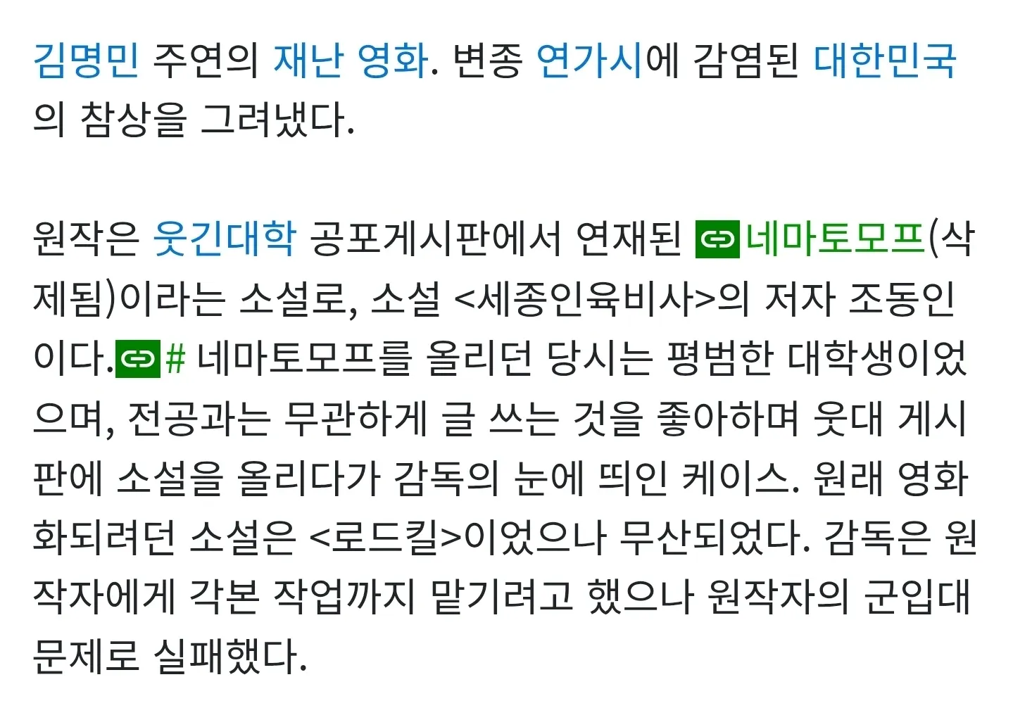 영화 연가시 원작이 웃대인이였구나