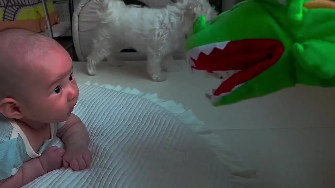 악어로부터 공격당하는 아기를 지키는 반려견.GIF