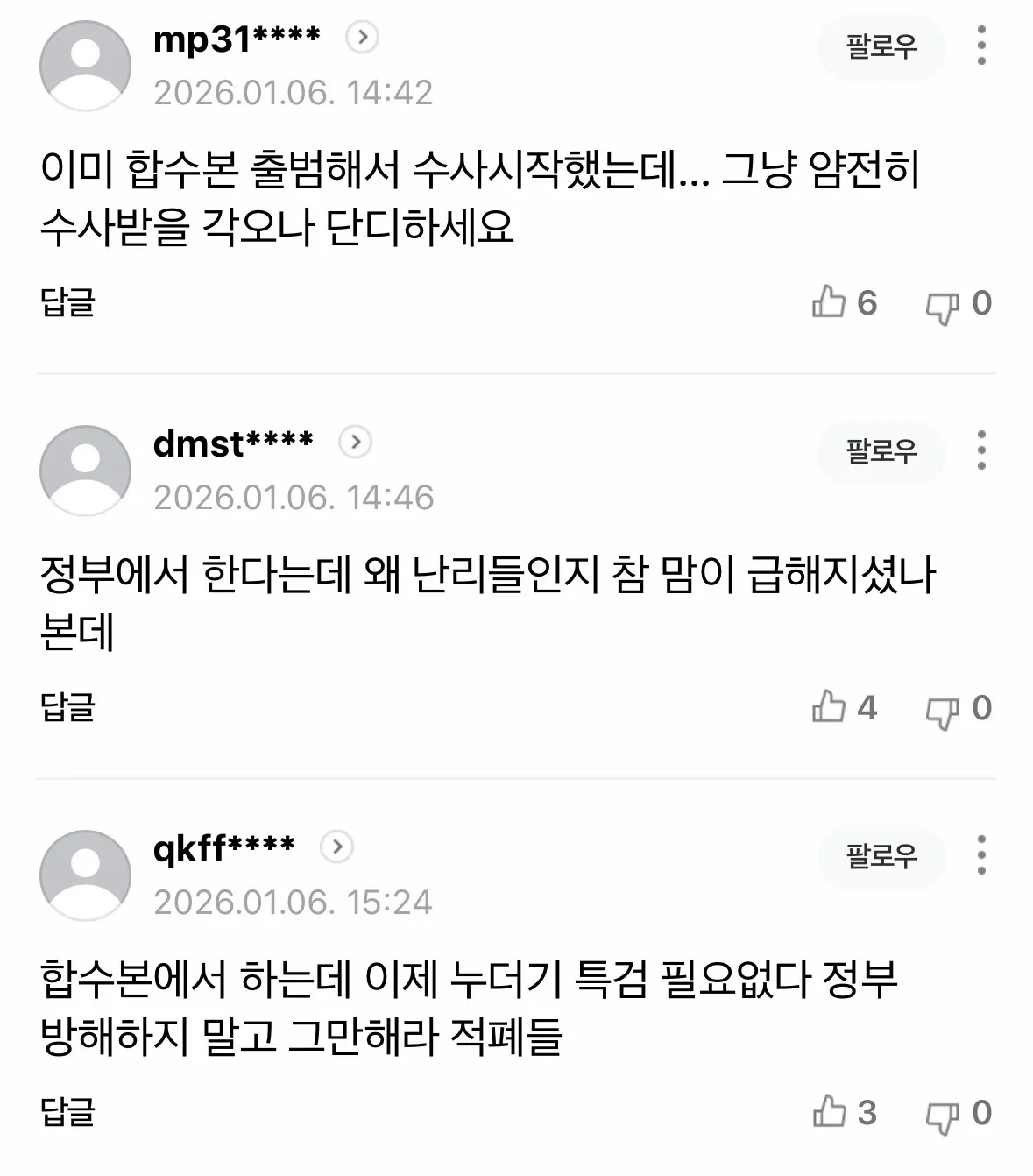 뭔가 많이 쫄려 보이는 민주당캠핑족@a329f9aa2일 전 https://naver.me/GUmiXf5a 오늘 정부 주도 합수본 출범 발표하니까 갑자기 법사위에서 일정 바꿔서 특검법 논의한다고 함